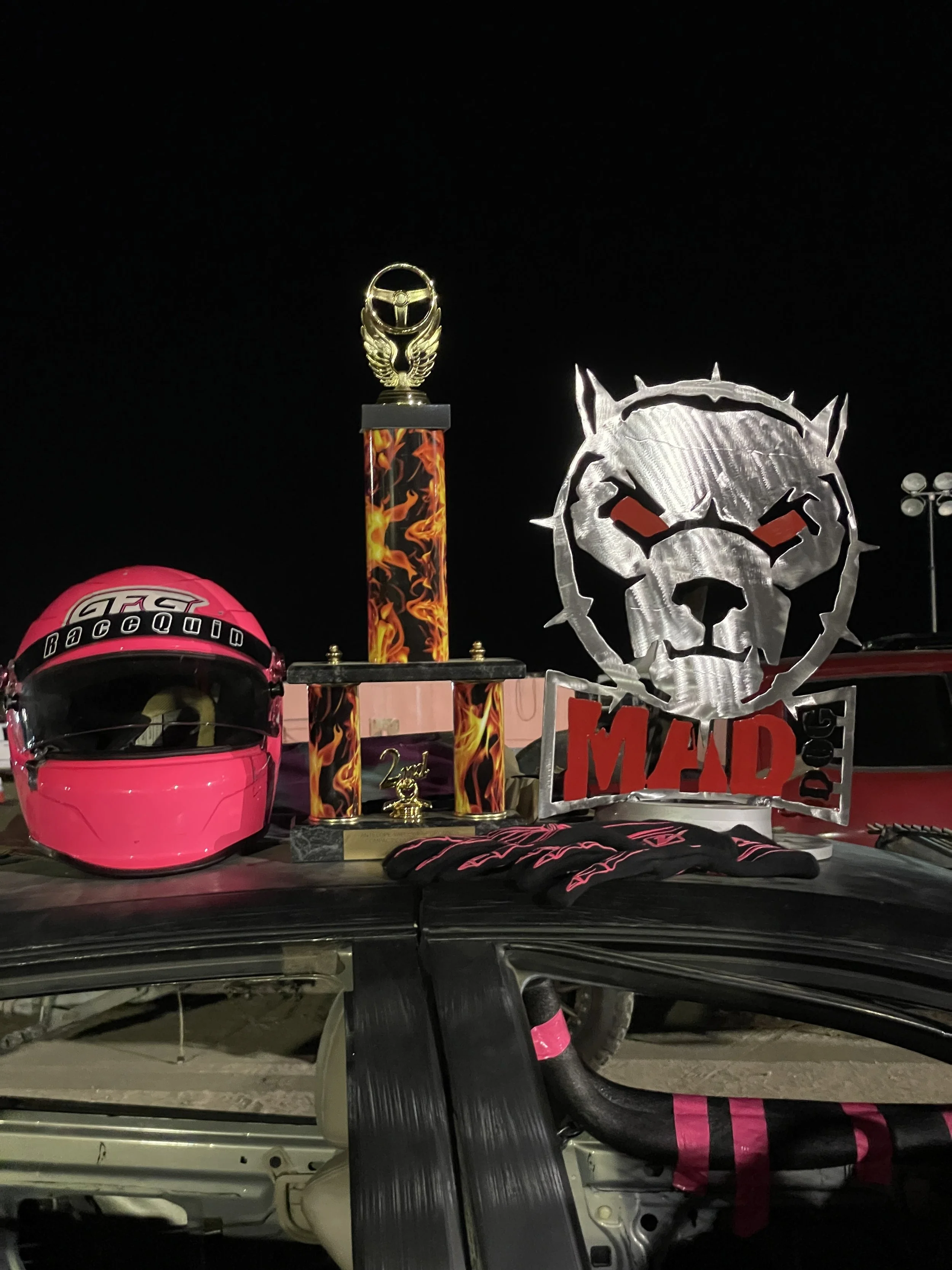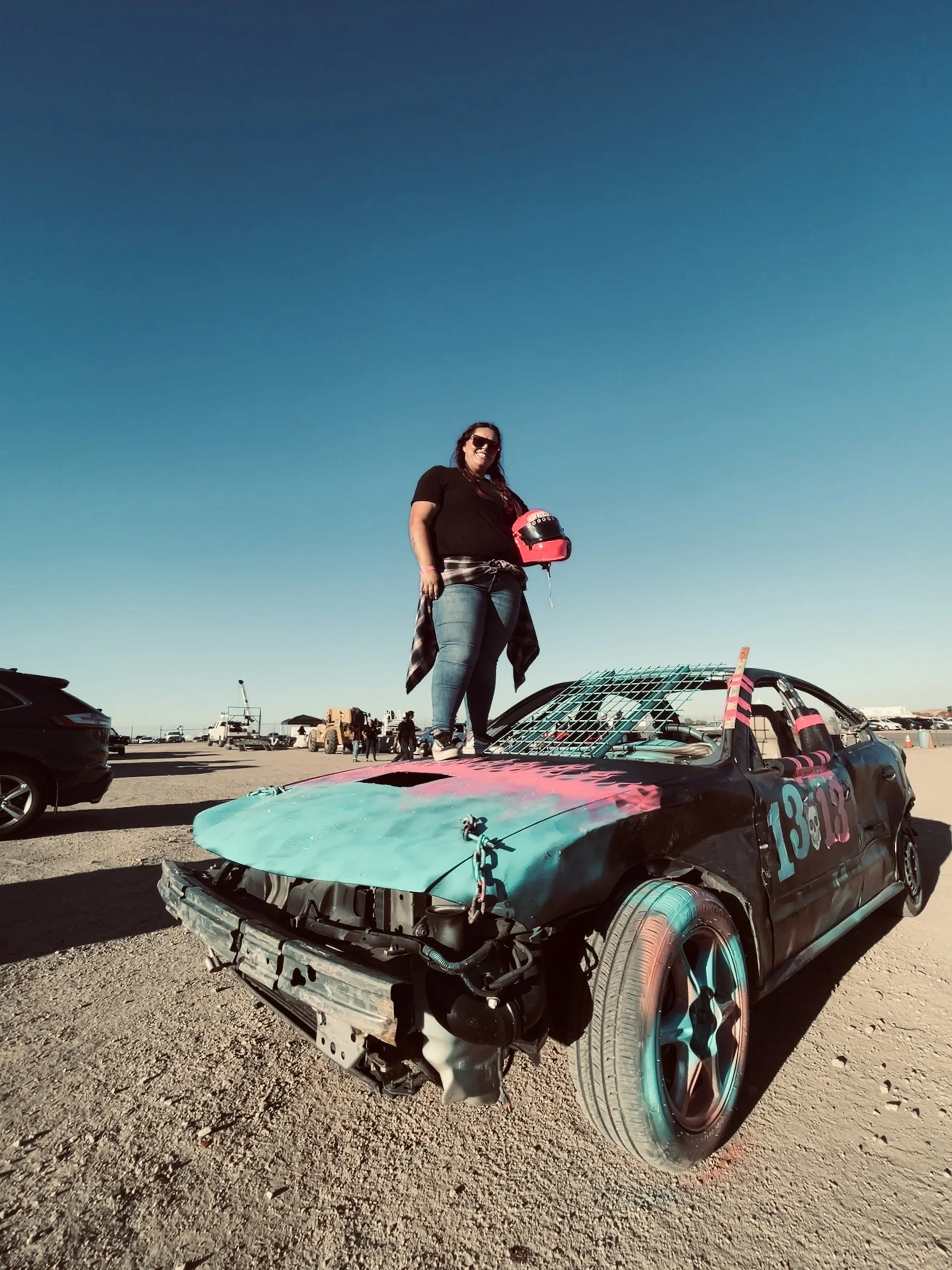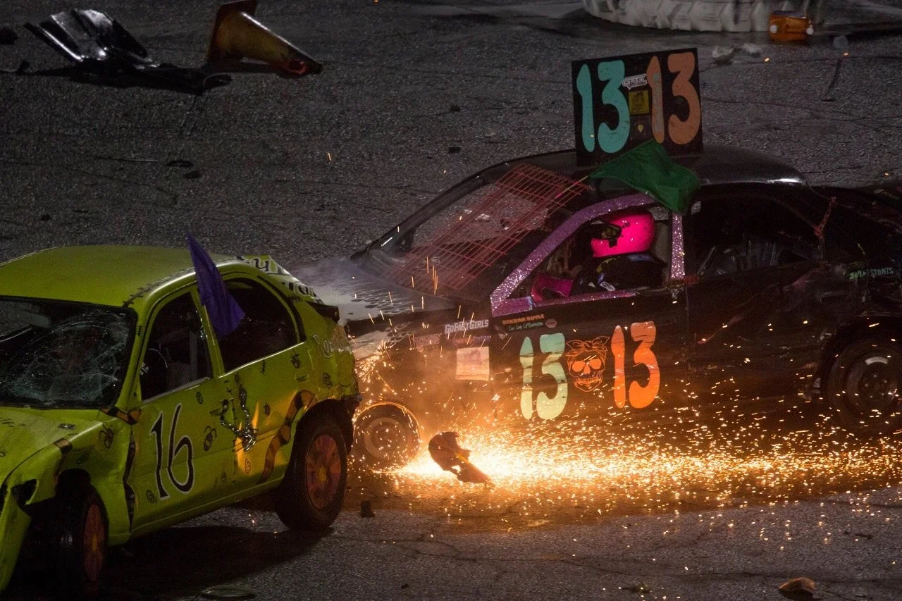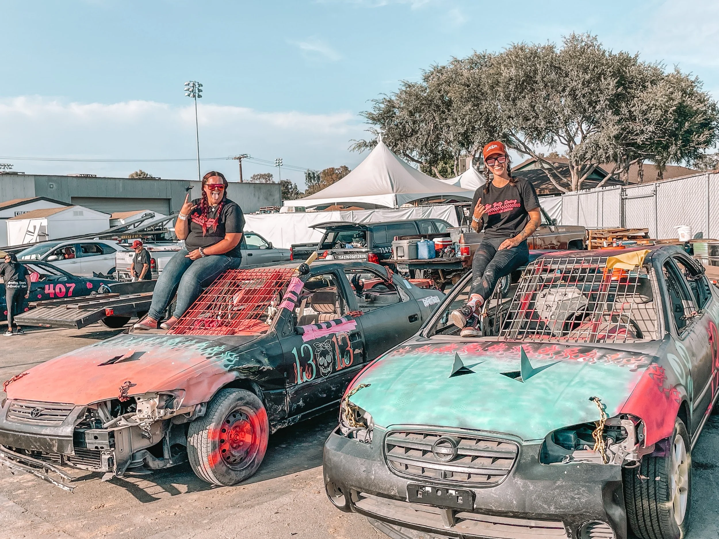The first Big Betty demolition vehicle debuted at the 2021 Ventura Raceway demolition derby, Ventura California is home base for both Bekkah and Big Betty. The dynamic duo has since gone on to compete all over Southern California quickly becoming a crowd favorite. As Big Betty’s success began to grown so did the Big Betty Racing family. In 2022 The Big Betty Racing Terror Twins were unveiled. With Bekkah behind the wheel of Big Betty she joined forces with driver #666 Keilani Mussetter, and her car the hell kitten. The pair earned their names as the Terror Twins for having matching inverse paint jobs that pay omage to the original Big Betty vehicle. Beween the two of them Big Betty Racing has accumlated more than 10 podiums.
